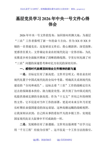 / 基层党员学习2026年中央一号文件心得体会