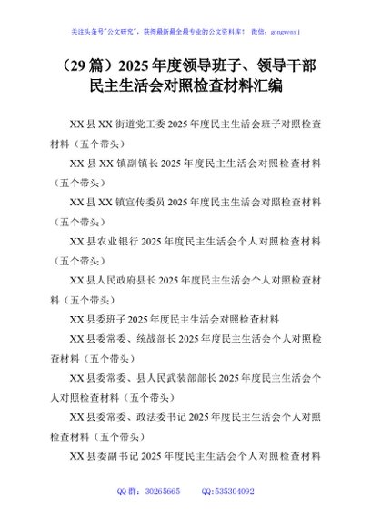 / (29篇)2025年度领导班子、领导干部民主生活会对照检查材料汇编