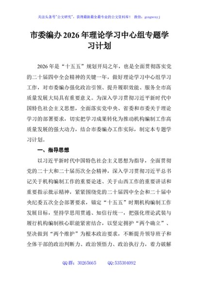 / 市委编办2026年理论学习中心组专题学习计划