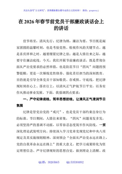 / 在2026年春节前党员干部廉政谈话会上的讲话
