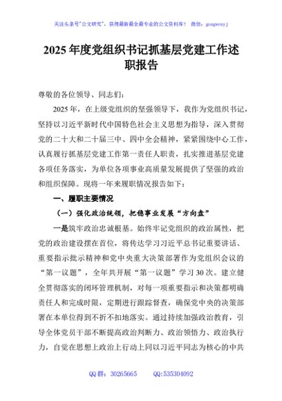 / 2025年度党组织书记抓基层党建工作述职报告