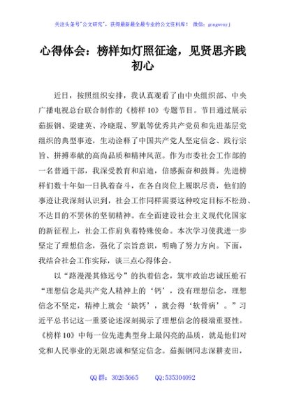 / 心得体会:榜样如灯照征途,见贤思齐践初心