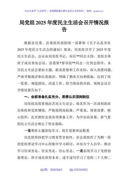 / 局党组2025年度民主生活会召开情况报告