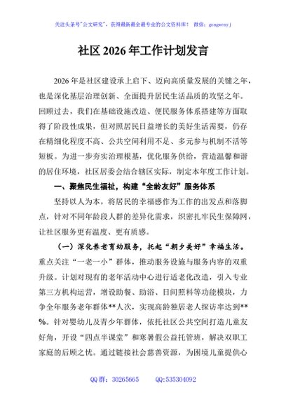 / 社区2026年工作计划发言
