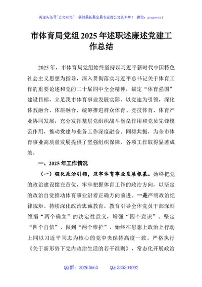 / 市体育局党组2025年述职述廉述党建工作总结