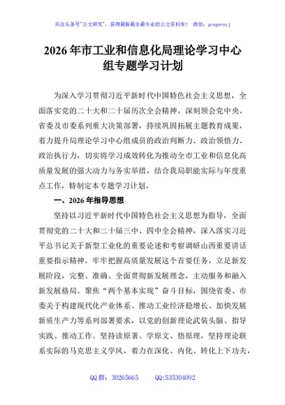 / 2026年市工业和信息化局理论学习中心组专题学习计划