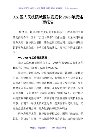/ XX区人民法院城区法庭庭长2025年度述职报告