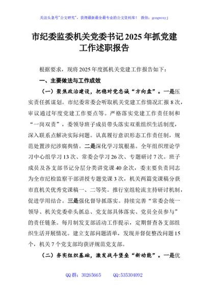 / 市纪委监委机关党委书记2025年抓党建工作述职报告