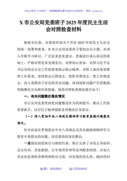 / X市公安局党委班子2025年度民主生活会对照检查材料