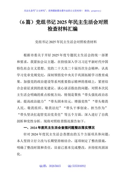 未生成预览图,长按二维码添加 (6篇)党组书记2025年民主生活会对照检查材料汇编 - 公文研究