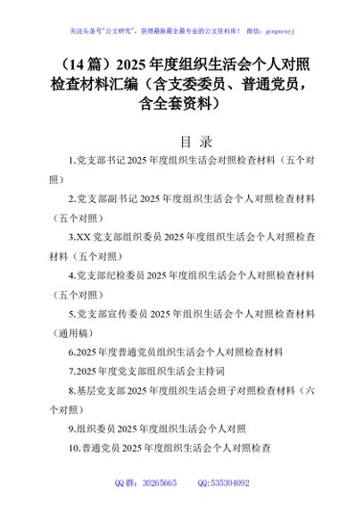 / (14篇)2025年度组织生活会个人对照检查材料汇编(含支委委员、普通党员,含全套资料)