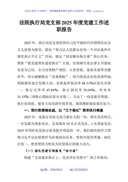 / 法院执行局党支部2025年度党建工作述职报告