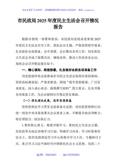 未生成预览图,长按二维码添加 市民政局2025年度民主生活会召开情况报告 - 公文研究