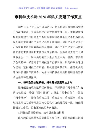 未生成预览图,长按二维码添加 市科学技术局2026年机关党建工作要点 - 公文研究
