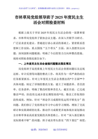未生成预览图,长按二维码添加 市林草局党组领导班子2025年度民主生活会对照检查材料 - 公文研究