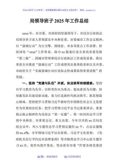 未生成预览图,长按二维码添加 局领导班子2025年工作总结 - 公文研究