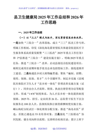 / 县卫生健康局2025年工作总结和2026年工作思路