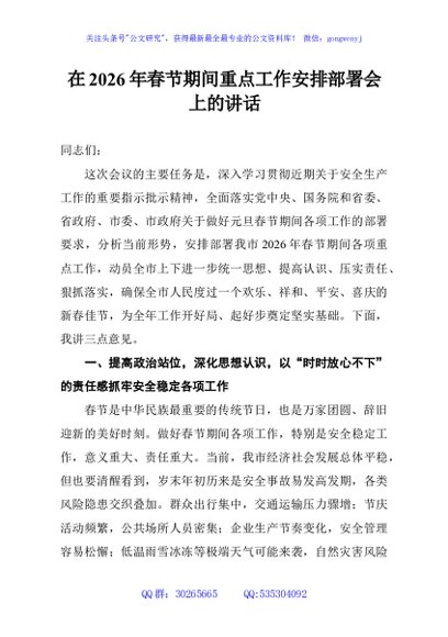 / 在2026年春节期间重点工作安排部署会上的讲话