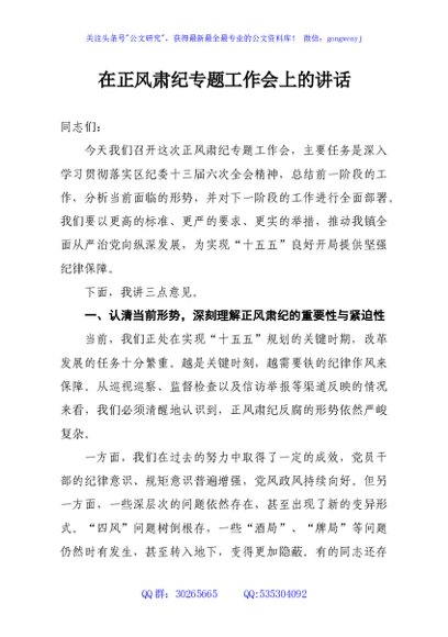 / 在正风肃纪专题工作会上的讲话