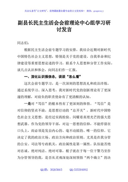 / 副县长民主生活会会前理论中心组学习研讨发言
