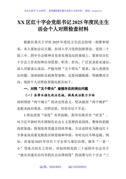 / XX区红十字会党组书记2025年度民主生活会个人对照检查材料