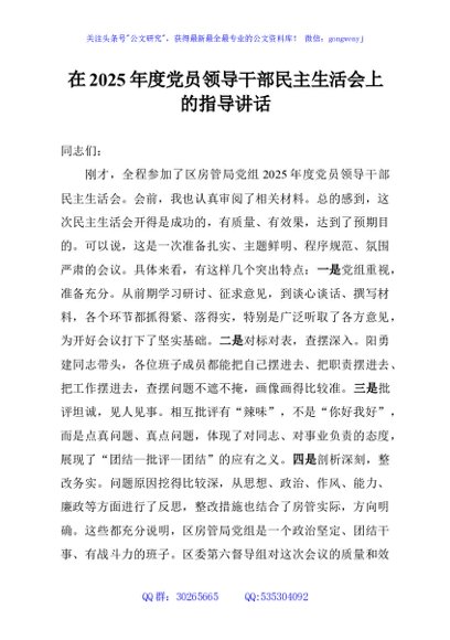 / 在2025年度党员领导干部民主生活会上的指导讲话
