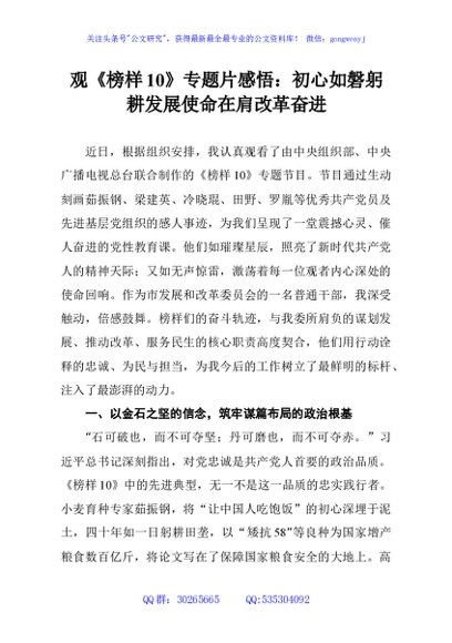 / 观《榜样10》专题片感悟:初心如磐躬耕发展使命在肩改革奋进
