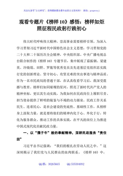 / 观看专题片《榜样10》感悟:榜样如炬照征程民政躬行践初心