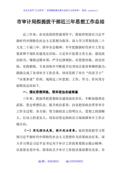 / 市审计局拟提拔干部近三年思想工作总结