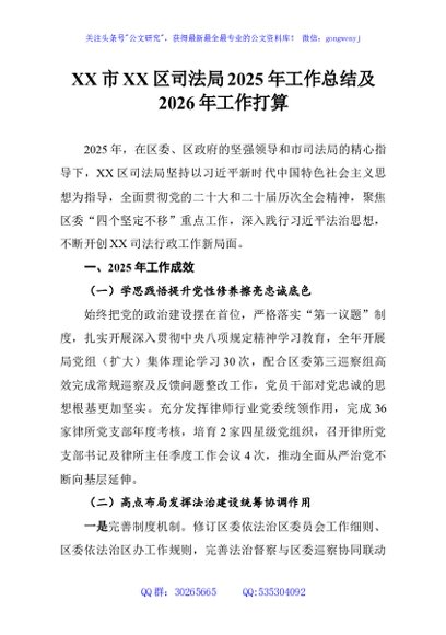 / XX市XX区司法局2025年工作总结及2026年工作打算
