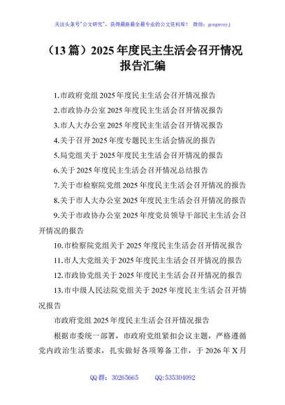 / (13篇)2025年度民主生活会召开情况报告汇编