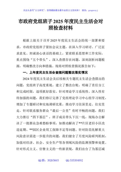 未生成预览图,长按二维码添加 市政府党组班子2025年度民主生活会对照检查材料 - 公文研究