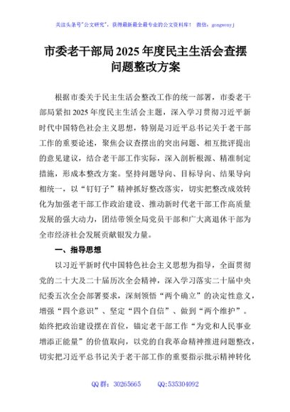 / 市委老干部局2025年度民主生活会查摆问题整改方案