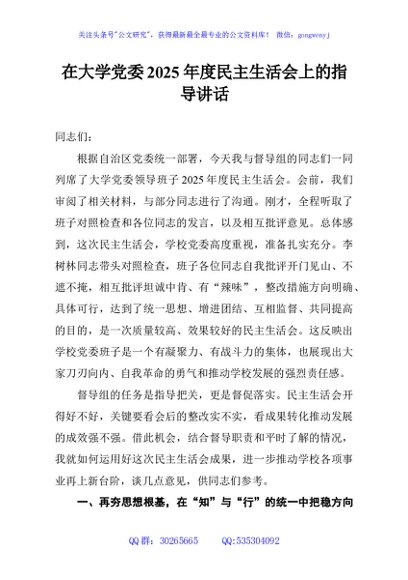 / 在大学党委2025年度民主生活会上的指导讲话