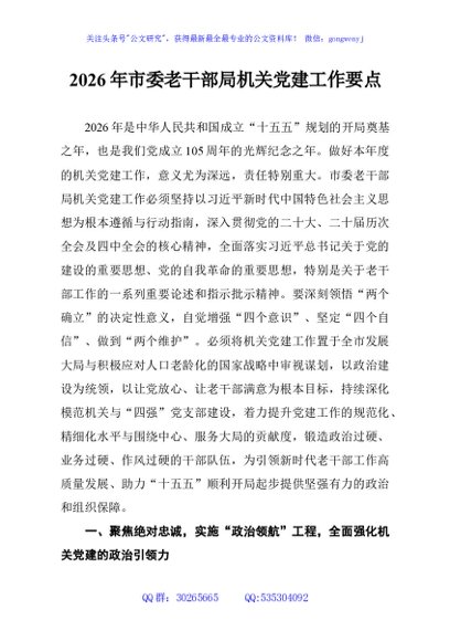 / 2026年市委老干部局机关党建工作要点