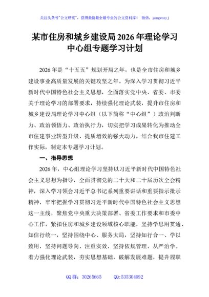 / 某市住房和城乡建设局2026年理论学习中心组专题学习计划