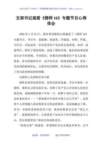 未生成预览图,长按二维码添加 支部书记观看《榜样10》专题节目心得体会 - 公文研究
