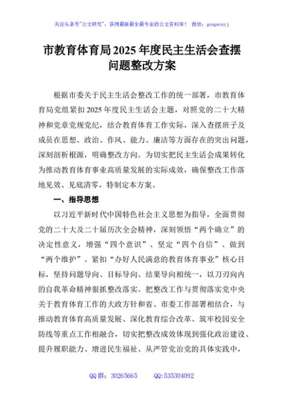未生成预览图,长按二维码添加 市教育体育局2025年度民主生活会查摆问题整改方案 - 公文研究