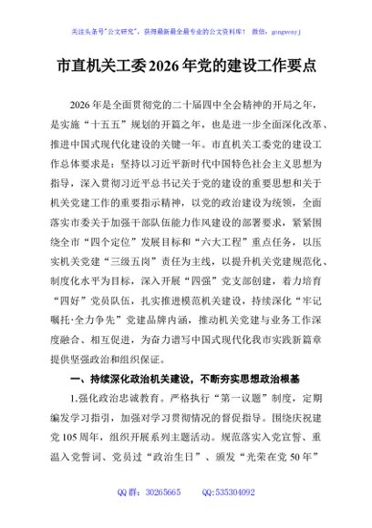 未生成预览图,长按二维码添加 市直机关工委2026年党的建设工作要点 - 公文研究
