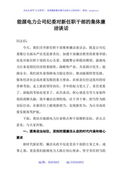 / 能源电力公司纪委对新任职干部的集体廉洁谈话