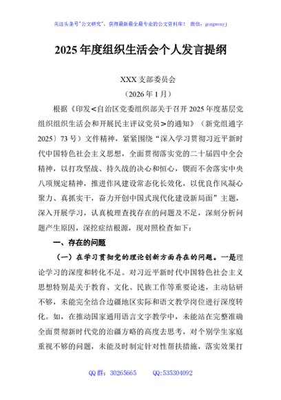 / 2025年度组织生活会个人发言提纲