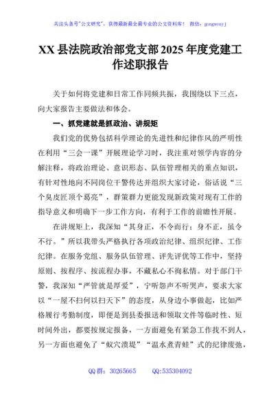 / XX县法院政治部党支部2025年度党建工作述职报告