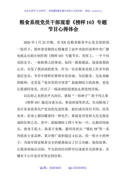 / 粮食系统党员干部观看《榜样10》专题节目心得体会