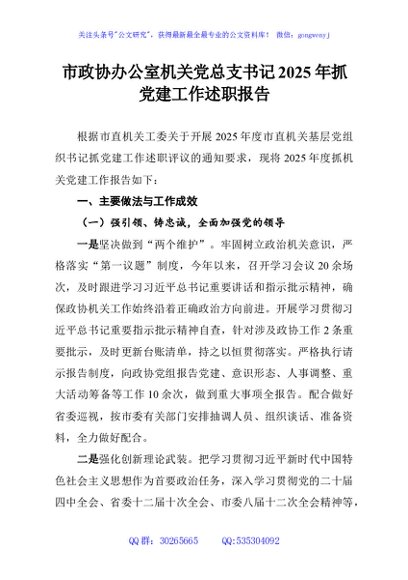 / 市政协办公室机关党总支书记2025年抓党建工作述职报告