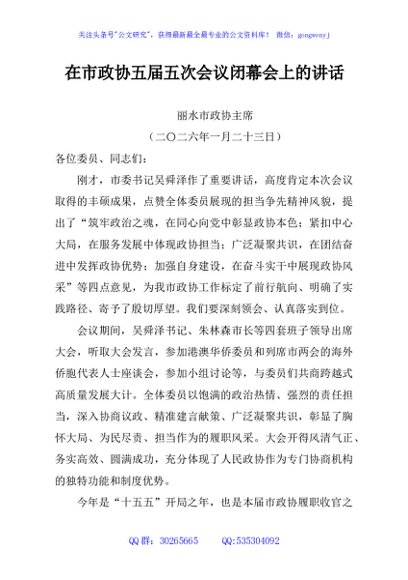 / 在市政协五届五次会议闭幕会上的讲话