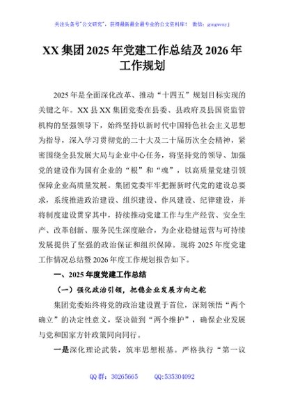 / XX集团2025年党建工作总结及2026年工作规划