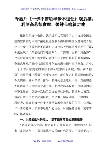 / 专题片《一步不停歇半步不退让》观后感:利剑高悬惩贪腐,警钟长鸣筑防线