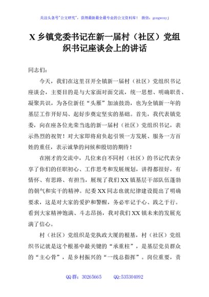 X乡镇党委书记在新一届村(社区)党组织书记座谈会上的讲话