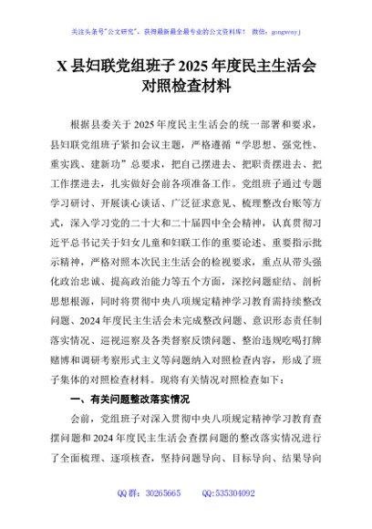 / X县妇联党组班子2025年度民主生活会对照检查材料