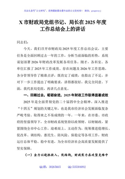 / X市财政局党组书记、局长在2025年度工作总结会上的讲话